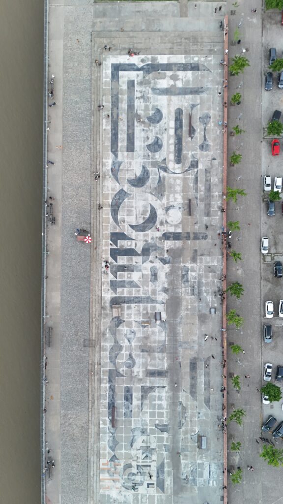 “La obra propone una lectura visual del río, el sol y la ciudad a través de tramas geométricas y una paleta que combina ocres, amarillos y azules. El diseño genera una ilusión de profundidad y movimiento que invita a redescubrir el espacio urbano. No es solo una intervención estética, es una forma de decir presente, de celebrar los 300 años con una obra viva, abierta y transformadora” agregó David Petroni.