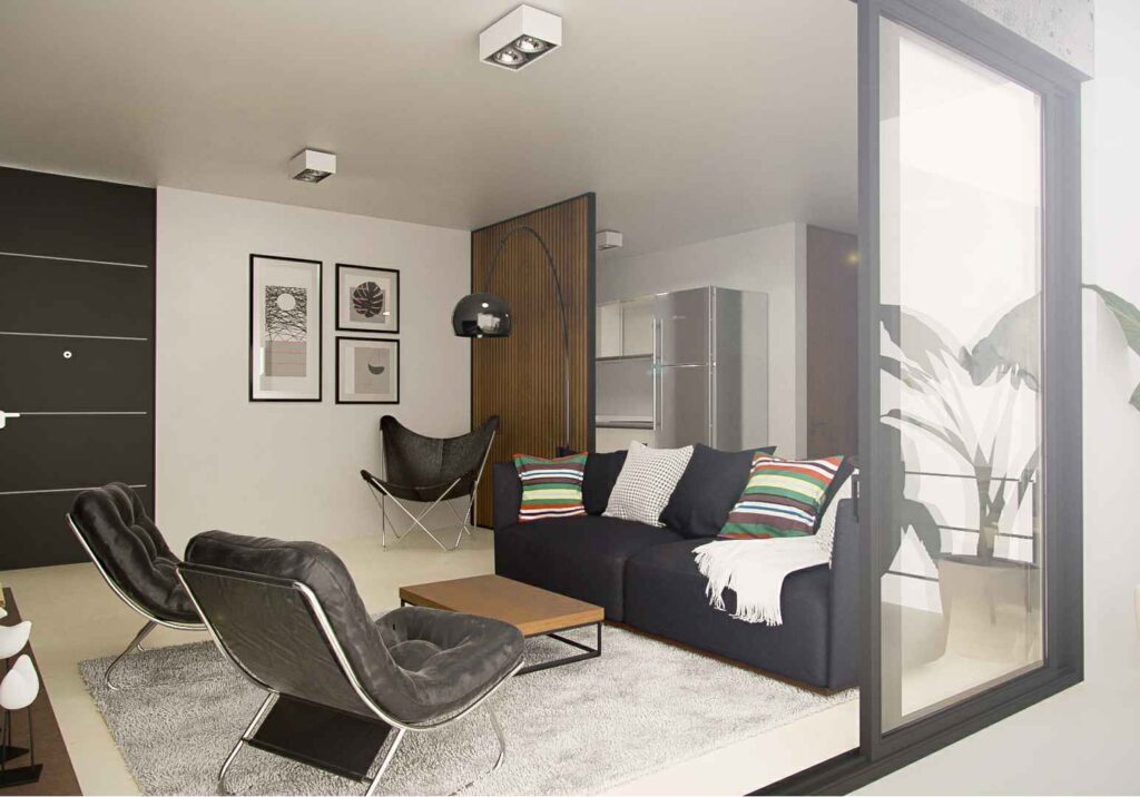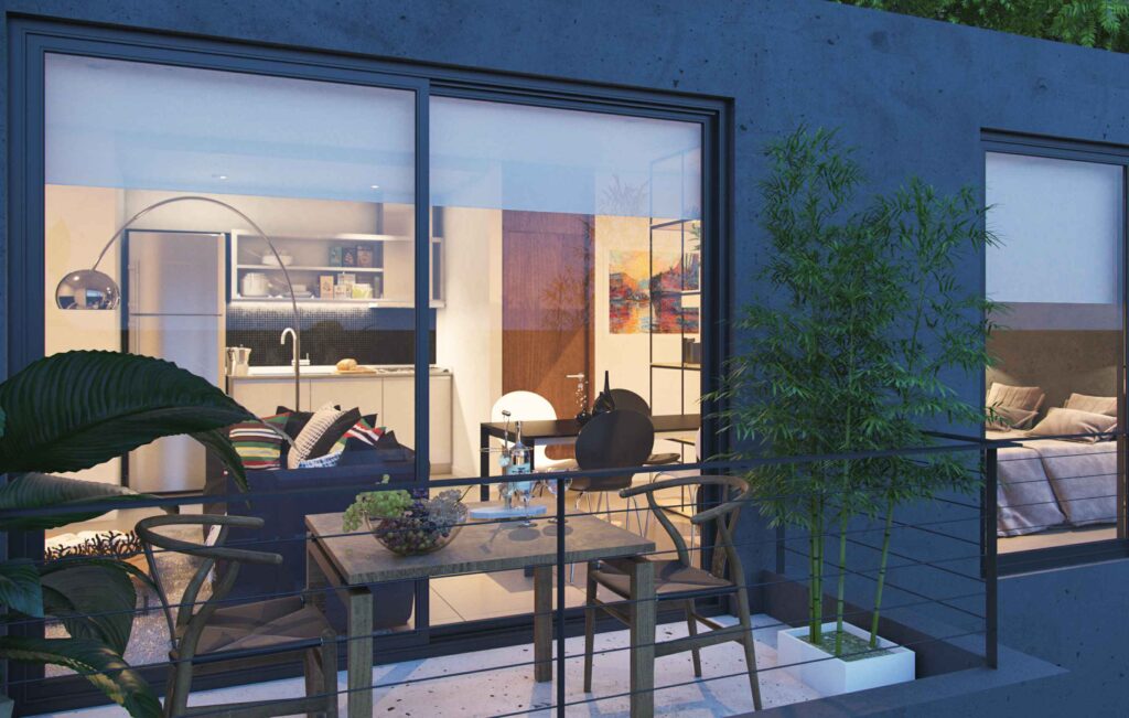 Todas las unidades están pensadas con un concepto de amplitud, para vivir, trabajar y disfrutar. Además tiene cámaras de seguridad, accesos al edificio con reconocimiento facial y QR para invitados, cerraduras electrónicas en acceso a viviendas y unidades preparadas para APP de controles de accesos y domótica.