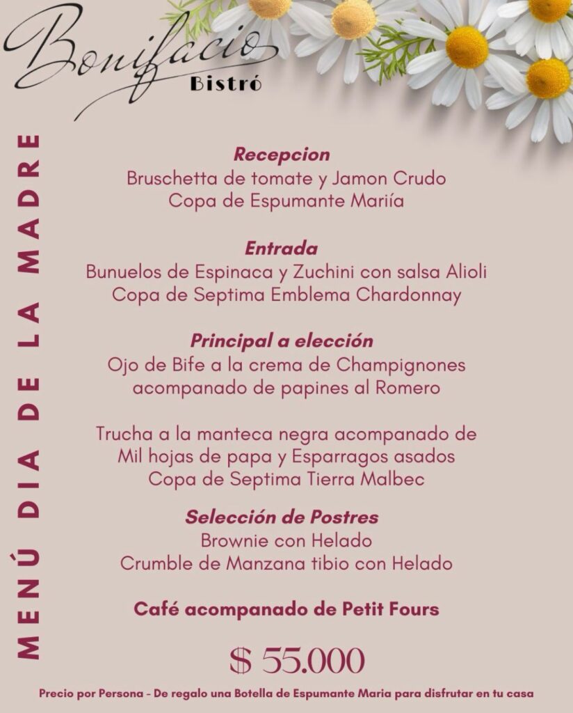 BONIFACIO BISTRÓ, Menú especial para el día de la madre y una botella de espumante de regalo.