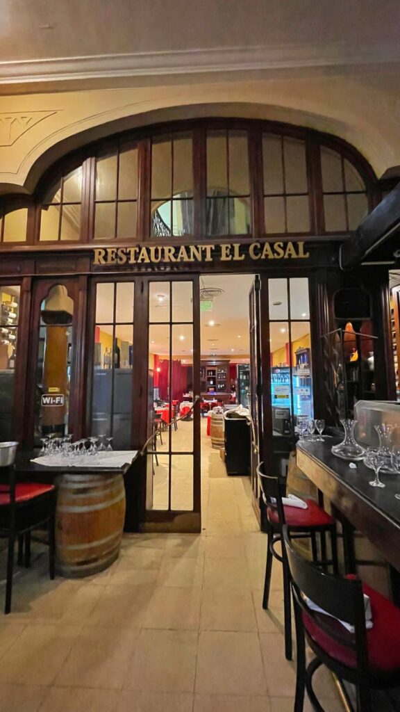 Este clásico se ubica en el edificio histórico, debajo de un maravilloso vitreaux de 1880 que acompaña la escalera de honor del histórico edificio. Allí, las especialidades son las tapas: callos, pan tumaca, boquerones e infinidades de auténticas tapas que nos harán sentir por momentos como en Barcelona. El restaurante ofrece “cuina” catalana.